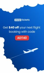 ASAP Tickets combines human travel experts, personalized flight searches, and 24/7 support to help you secure lower international fares, plus an exclusive $40 OFF coupon code: ADT40.